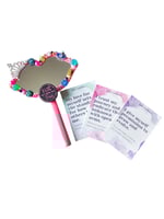 Set your intentions daily with this cute little handheld mirror. Every mirror is uniquely made with various themes and colors! It's 3x5 inches so you can carry it anywhere you go.